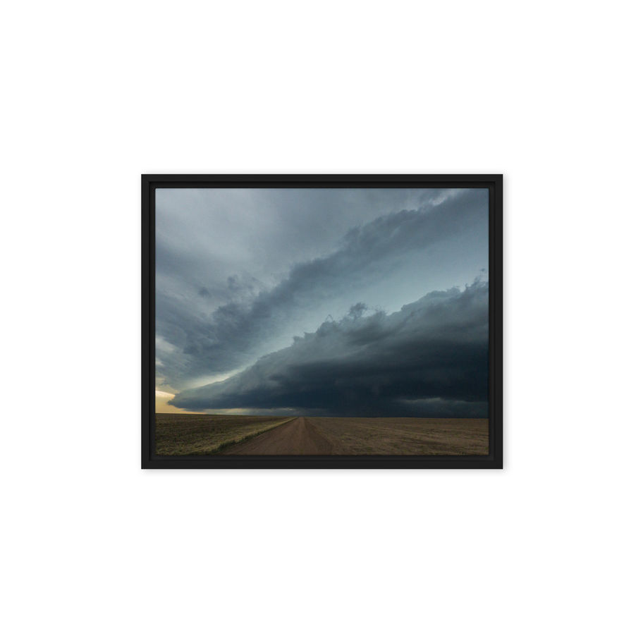 Venture into the heart of a supercell thunderstorm with this Into the Storm Framed Canvas! A lone road stretches towards the ominous vortex, rain-streaked fields reflecting the electrifying energy above. Capture the raw power and dramatic beauty of nature's fury, a testament to the thrill of the chase and the awe-inspiring forces that shape our world.