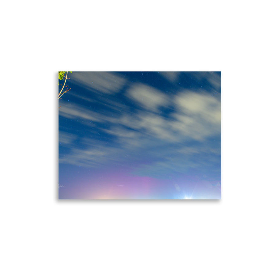 Witness the celestial magic of the Northern Lights as they danced across the night sky on July 30, 2024 with this print. This vibrant display of shimmering greens and purples paints a breathtaking scene of ethereal beauty.